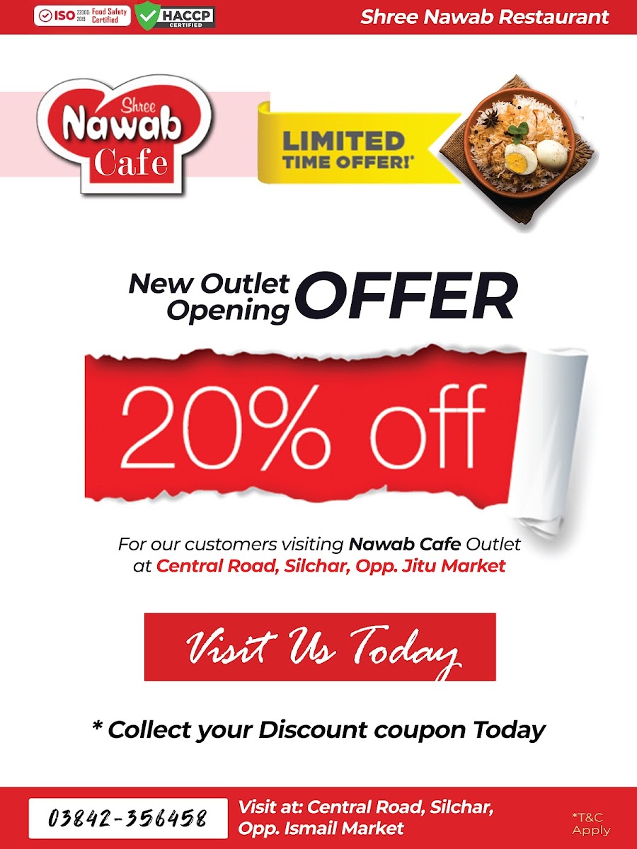 Welcome to Shree Nawab Restaurant, an exquisite dining destination located on the first floor of the Hotel Swagat Complex in the heart of Tarapur, Silchar. This culinary gem is easily accessible, situated opposite the bustling Ismail Market.